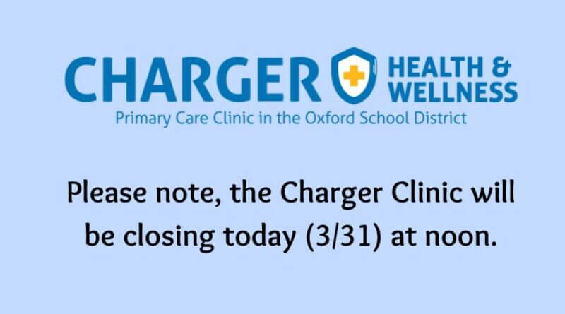 The Charger Clinic will close at noon today, according to a notice from clinic officials.