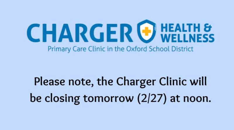 The Charger Health & Wellness Clinic will close early at noon Tuesday, according to a notice from the clinic’s management.