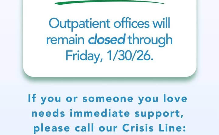 During the closure, individuals requiring immediate mental health support are encouraged to call the Crisis Line at (866) 837-7521. The line is available 24/7 to offer assistance.