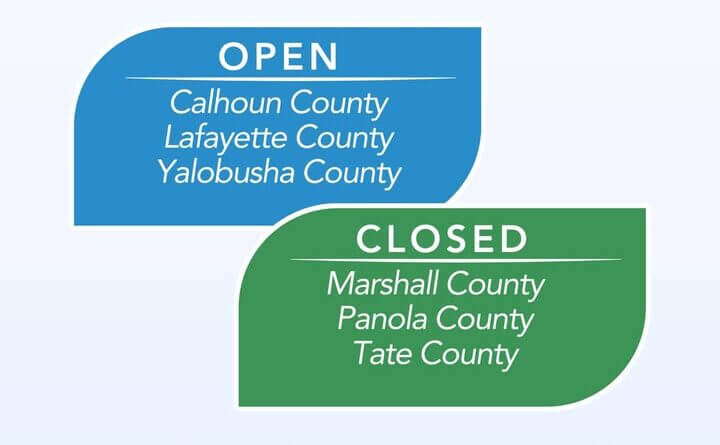 Offices in Marshall, Panola, and Tate counties will stay closed because of road and safety conditions, the release said.
