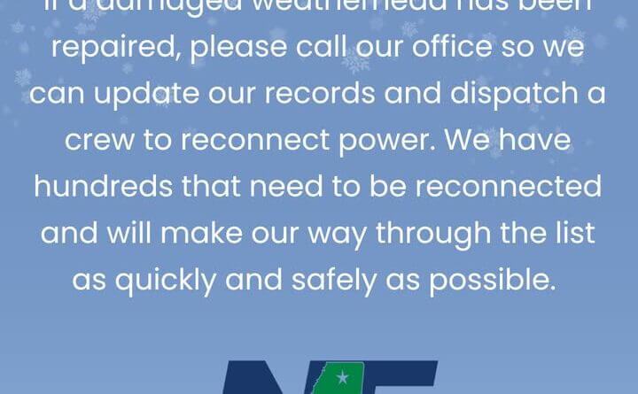 The utility company is asking electricians and homeowners to contact their office after repairing a damaged weatherhead. The company aims to update its records and dispatch crews to reconnect power.