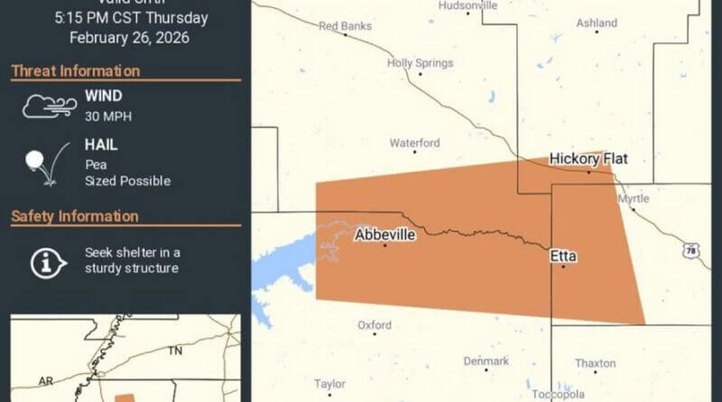 The Lafayette County Emergency Management Agency issued a special weather statement at 4:53 p.m. for northern Lafayette County, according to a social media post.