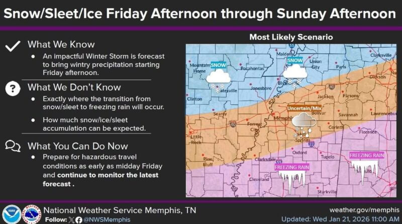 Lafayette County emergency officials warn residents of a winter storm expected to impact the area from Friday evening through Sunday. Confidence remains high that the storm will cause hazardous travel conditions and winter weather hazards.