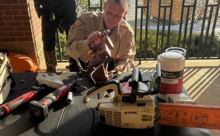 Sgt. Bevill from the Lafayette County Sheriff’s Office was seen setting up and sharpening chainsaw blades for deputies, according to a recent social media post.