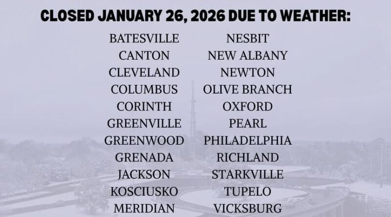 Mississippi Driver Service Centers Closed or Delayed Due to Winter Storm