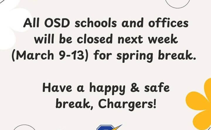 All Oregon School District schools and offices will be closed from March 9 through March 13 for spring break, according to district officials.