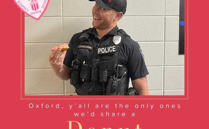 The Oxford Police Department extended Valentine’s Day wishes to the community, emphasizing the importance of sharing love and kindness. In a social media post, officials said love is worth sharing, whether on duty or off, and included a playful nod to donuts.