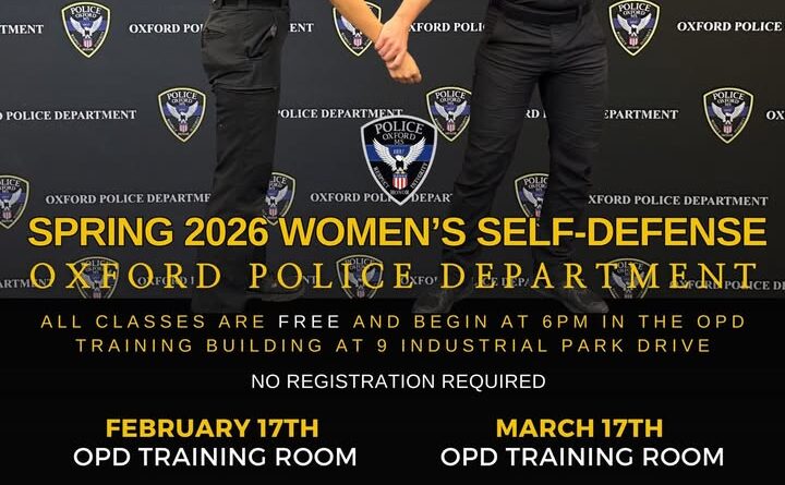 The Oxford Police Department will host its next women’s self-defense class on Tuesday, March 17, at 6 p.m. The session is free and open to the public, with no prior registration required.