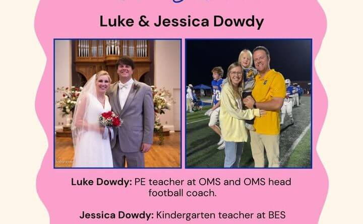 As Valentine’s Week comes to a close, Oxford School District highlighted a local love story involving two educators. Luke Dowdy, a physical education teacher and football coach at Oxford Middle School, and Jessica Dowdy, a kindergarten teacher at Oxford Lower Elementary School, are a couple committed to serving students and the community.