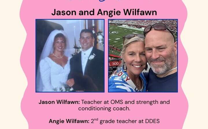 The latest featured couple includes Jason and Angie Wilfawn. Jason Wilfawn is a teacher at Oxford Middle School and the district’s strength and conditioning coach. Angie Wilfawn teaches second grade at Della Davidson Elementary School.