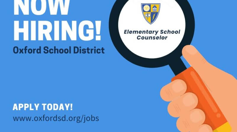 Oxford School District is hiring for several positions across the district, according to an announcement on its website. Open roles include elementary school counselors, teacher assistants, an office manager at Oxford High School, a speech-language pathologist, and after-school assistants.