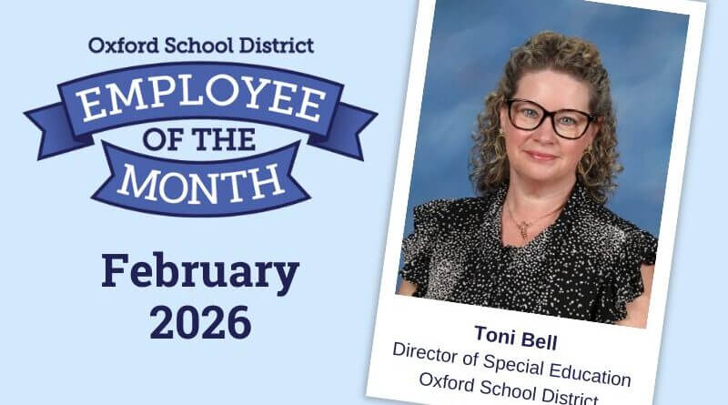Toni Bell, the district’s director of special education, has been recognized as Oxford School District’s Employee of the Month for February. The district praised her leadership and commitment to supporting students with special needs.
